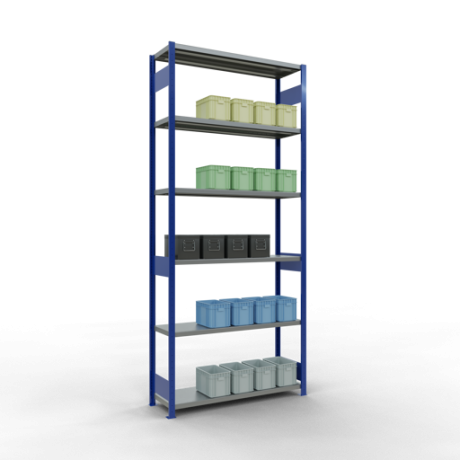 Schwerlastregal vom Markenhersteller SCHULTE Lagertechnik. Das Schwerlastregal vom Typ MULTIplus ist das wohl bekannteste Steckregal auf dem deutschen Markt und wird oftmals, in Lagern, an Produktionslinien, in Archiven, oder auch in privaten Haushalten verwendet. Das hier angebotene Schwerlastregal Grundregal mit der Artikelnummer 12942-130-LR-B wird in 3000 mm Höhe, 1300 mm Breite und 400 mm Tiefe geliefert. Es ist mit 7 Fachebenen ausgestattet und kann je Ebene mit 250 kg belastet werden. Um die langfristige Nutzung zu gewährleisten sind die Bauteile in der Farbe RAL 5010 enzianblau/verzinkt. Das Schwerlastregal ist für die Beidseitige Bedienung ausgelegt.