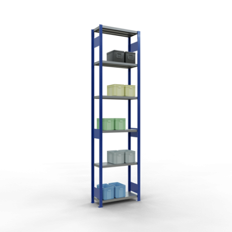 Schwerlastregal vom Markenhersteller SCHULTE Lagertechnik. Das Schwerlastregal vom Typ MULTIplus ist das wohl bekannteste Steckregal auf dem deutschen Markt und wird oftmals, in Lagern, an Produktionslinien, in Archiven, oder auch in privaten Haushalten verwendet. Das hier angebotene Schwerlastregal Grundregal mit der Artikelnummer 12932-75-LR-B wird in 3000 mm Höhe, 750 mm Breite und 300 mm Tiefe geliefert. Es ist mit 7 Fachebenen ausgestattet und kann je Ebene mit 250 kg belastet werden. Um die langfristige Nutzung zu gewährleisten sind die Bauteile in der Farbe RAL 5010 enzianblau/verzinkt. Das Schwerlastregal ist für die Beidseitige Bedienung ausgelegt.
