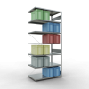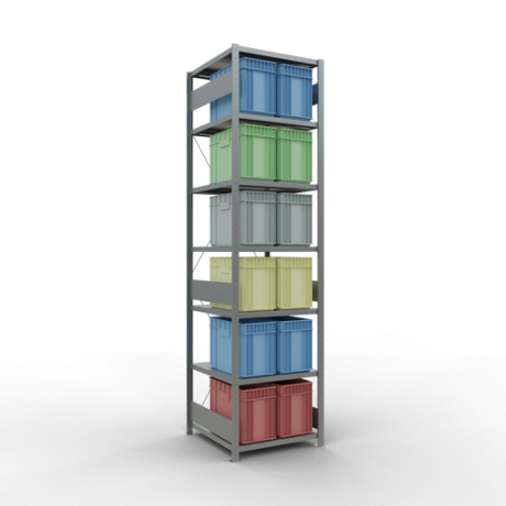 Die einzelnen Fachböden können im Raster von 25 mm in der Höhe verstellt werden. Sollte die angegebene, gleichmäßig verteilte Fachlast i.H.v. 250 kg je Fach nicht ausreichen, können Sie die Fachböden mit Verstärkungsunterzügen ausstatten und so die Tragkraft erhöhen. Bitte beachten Sie dabei allerdings die maximal zulässige Feldlast.
