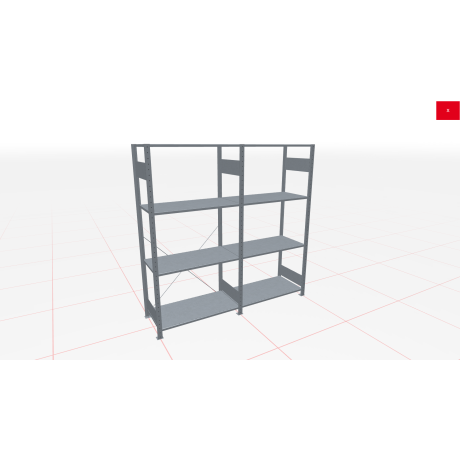 Schwerlastregal des Herstellers SCHULTE Lagertechnik in den Abmessungen 2.300x2600x400 mm (HxBxT). Es wird in der Farbe verzinkt geliefert und besteht aus 1 Grundregal in 1.300 mm Breite und 1 Anbauregal(-en) in 1.300 mm Breite. Jede der 4 Fachebenen kann mit bis zu 250 kg belastet werden. Das Schwerlastregal ist für die einseitige Bedienung ausgelegt und wird daher mit sogenannten Kreuzstreben ausgesteift. Die Schwerlastregal Fachebenen können im Raster von 25 mm in der Höhe verstellt werden. Die Lagerfläche auf den Fachböden beträgt insgesamt 4,16 m².