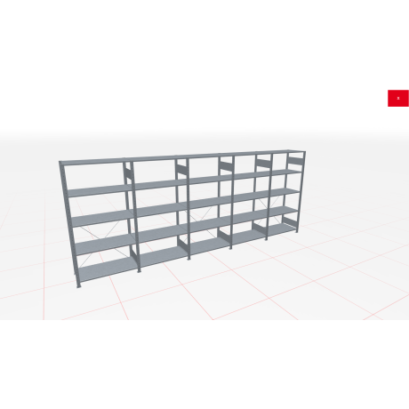 Schwerlastregal des Herstellers SCHULTE Lagertechnik in den Abmessungen 2.500x6500x500 mm (HxBxT). Es wird in der Farbe verzinkt geliefert und besteht aus 1 Grundregal in 1.300 mm Breite und 4 Anbauregal(-en) in 1.300 mm Breite. Jede der 5 Fachebenen kann mit bis zu 250 kg belastet werden. Das Schwerlastregal ist für die einseitige Bedienung ausgelegt und wird daher mit sogenannten Kreuzstreben ausgesteift. Die Schwerlastregal Fachebenen können im Raster von 25 mm in der Höhe verstellt werden. Die Lagerfläche auf den Fachböden beträgt insgesamt 16,25 m².