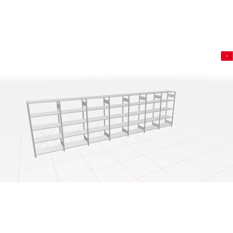 Schwerlastregal des Herstellers SCHULTE Lagertechnik in den Abmessungen 2.500x7000x400 mm (HxBxT). Es wird in der Farbe RAL 7035 lichtgrau geliefert und besteht aus 1 Grundregal in 1.000 mm Breite und 6 Anbauregal(-en) in 1.000 mm Breite. Jede der 5 Fachebenen kann mit bis zu 250 kg belastet werden. Das Schwerlastregal ist für die beidseitige Bedienung ausgelegt und wird daher mit sogenannten Längenriegeln ausgesteift. Die Schwerlastregal Fachebenen können im Raster von 25 mm in der Höhe verstellt werden. Die Lagerfläche auf den Fachböden beträgt insgesamt 14 m².