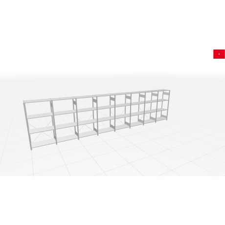 Schwerlastregal des Herstellers SCHULTE Lagertechnik in den Abmessungen 2.500x8000x800 mm (HxBxT). Es wird in der Farbe RAL 7035 lichtgrau geliefert und besteht aus 1 Grundregal in 1.000 mm Breite und 7 Anbauregal(-en) in 1.000 mm Breite. Jede der 4 Fachebenen kann mit bis zu 250 kg belastet werden. Das Schwerlastregal ist für die beidseitige Bedienung ausgelegt und wird daher mit sogenannten Längenriegeln ausgesteift. Die Schwerlastregal Fachebenen können im Raster von 25 mm in der Höhe verstellt werden. Die Lagerfläche auf den Fachböden beträgt insgesamt 25,6 m².