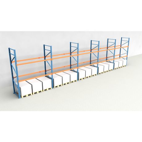 Das Palettenregal besteht aus insgesamt 5 Regalfeldern mit einer Breite von 2.700 mm und bietet Platz für 45 Europaletten (inklusive Bodenebene).