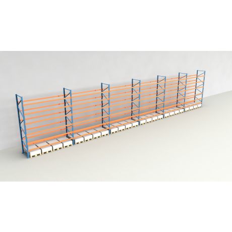 Das Palettenregal besteht aus insgesamt 6 Regalfeldern mit einer Breite von 3.600 mm und bietet Platz für 168 Europaletten (inklusive Bodenebene).
