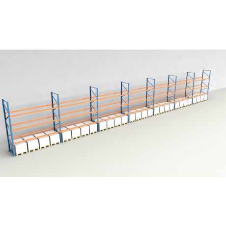 Das Palettenregal von NEDCON Lagertechnik hat Abmessungen von 2.500x26000x1.100 mm (HxBxT) und verfügt über 4 Lagerebenen. Jedes Regalfeld ist mit 3 Traversenebenen ausgestattet und kann je Ebene mit bis zu 4.700 kg (1175 kg je Europalette) belastet werden. Die maximale Feldlast beträgt 12.000 kg und darf niemals überschritten werden. Die lichte Fachhöhe zwischen den einzelnen Ebenen beträgt 500 mm. Bitte beachten Sie, dass auf den Traversen keine zusätzlichen Auflagen wie Spanplatten, oder Gitterböden vorhanden sind.