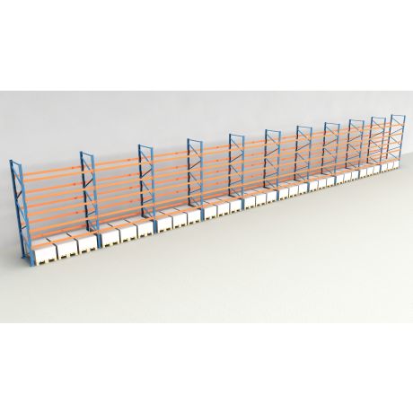 Das Palettenregal besteht aus insgesamt 10 Regalfeldern mit einer Breite von 2.700 mm und bietet Platz für 180 Europaletten (inklusive Bodenebene).