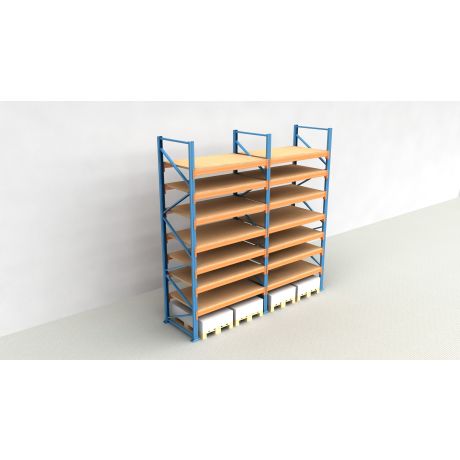 Das Palettenregal von NEDCON Lagertechnik hat Abmessungen von 2.500x3950x1.100 mm (HxBxT) und verfügt über 8 Lagerebenen. Jedes Regalfeld ist mit 7 Traversenebenen ausgestattet und kann je Ebene mit bis zu 3.000 kg (1500 kg je Europalette) belastet werden. Die maximale Feldlast beträgt 12.000 kg und darf niemals überschritten werden. Die lichte Fachhöhe zwischen den einzelnen Ebenen beträgt 200 mm. Die Palettenregal Traversenebenen sind mit Spanplatten vom Typ P4 in 38 mm Stärke ausgestattet.