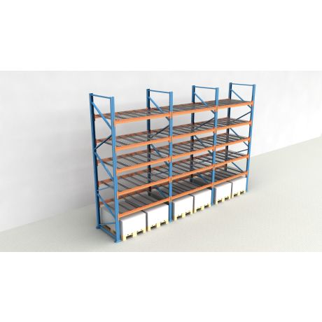 Das Palettenregal von NEDCON Lagertechnik hat Abmessungen von 2.500x5875x1.100 mm (HxBxT) und verfügt über 6 Lagerebenen. Jedes Regalfeld ist mit 5 Traversenebenen ausgestattet und kann je Ebene mit bis zu 3.800 kg (1900 kg je Europalette) belastet werden. Die maximale Feldlast beträgt 12.000 kg und darf niemals überschritten werden. Die lichte Fachhöhe zwischen den einzelnen Ebenen beträgt 300 mm. Die Palettenregal Traversenebenen sind mit Gitterböden vom Typ MantaMESH in der 750 kg Variante (je Palettenplatz) ausgestattet.