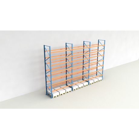 Das Palettenregal besteht aus insgesamt 3 Regalfeldern mit einer Breite von 2.700 mm und bietet Platz für 72 Europaletten (inklusive Bodenebene).