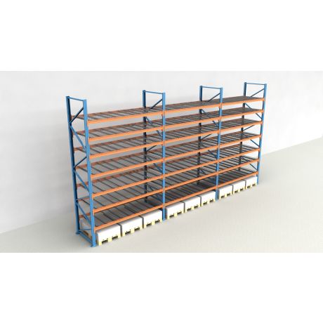 Das Palettenregal von NEDCON Lagertechnik hat Abmessungen von 2.500x8500x1.100 mm (HxBxT) und verfügt über 8 Lagerebenen. Jedes Regalfeld ist mit 7 Traversenebenen ausgestattet und kann je Ebene mit bis zu 3.000 kg (1000 kg je Europalette) belastet werden. Die maximale Feldlast beträgt 12.000 kg und darf niemals überschritten werden. Die lichte Fachhöhe zwischen den einzelnen Ebenen beträgt 200 mm. Die Palettenregal Traversenebenen sind mit Gitterböden vom Typ MantaMESH in der 750 kg Variante (je Palettenplatz) ausgestattet.