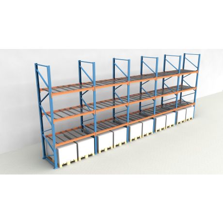 Das Palettenregal von NEDCON Lagertechnik hat Abmessungen von 2.500x9725x1.100 mm (HxBxT) und verfügt über 4 Lagerebenen. Jedes Regalfeld ist mit 3 Traversenebenen ausgestattet und kann je Ebene mit bis zu 3.800 kg (1900 kg je Europalette) belastet werden. Die maximale Feldlast beträgt 12.000 kg und darf niemals überschritten werden. Die lichte Fachhöhe zwischen den einzelnen Ebenen beträgt 500 mm. Die Palettenregal Traversenebenen sind mit Gitterböden vom Typ MantaMESH in der 750 kg Variante (je Palettenplatz) ausgestattet.