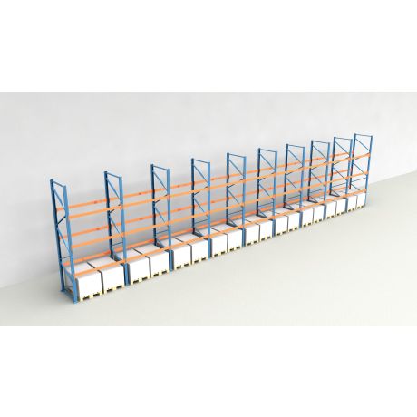 Das Palettenregal besteht aus insgesamt 9 Regalfeldern mit einer Breite von 1.825 mm und bietet Platz für 72 Europaletten (inklusive Bodenebene).
