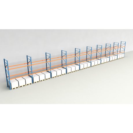 Das Palettenregal besteht aus insgesamt 9 Regalfeldern mit einer Breite von 2.700 mm und bietet Platz für 81 Europaletten (inklusive Bodenebene).