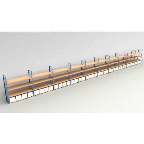 Das Palettenregal von NEDCON Lagertechnik hat Abmessungen von 3.000x37100x1.100 mm (HxBxT) und verfügt über 4 Lagerebenen. Jedes Regalfeld ist mit 3 Traversenebenen ausgestattet und kann je Ebene mit bis zu 4.700 kg (1175 kg je Europalette) belastet werden. Die maximale Feldlast beträgt 12.000 kg und darf niemals überschritten werden. Die lichte Fachhöhe zwischen den einzelnen Ebenen beträgt 650 mm. Die Palettenregal Traversenebenen sind mit Spanplatten vom Typ P4 in 38 mm Stärke ausgestattet.