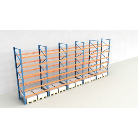 Das Palettenregal besteht aus insgesamt 5 Regalfeldern mit einer Breite von 1.825 mm und bietet Platz für 70 Europaletten (inklusive Bodenebene).
