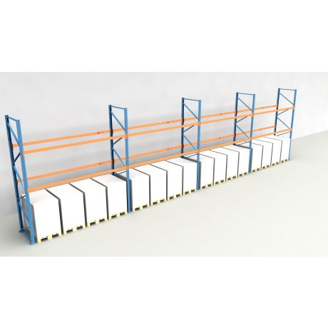 Das Palettenregal besteht aus insgesamt 4 Regalfeldern mit einer Breite von 3.600 mm und bietet Platz für 48 Europaletten (inklusive Bodenebene).