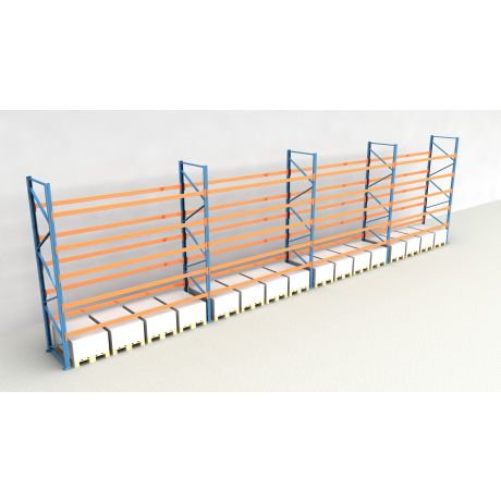 Das Palettenregal besteht aus insgesamt 4 Regalfeldern mit einer Breite von 3.600 mm und bietet Platz für 96 Europaletten (inklusive Bodenebene).