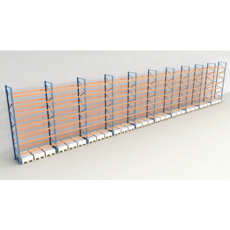Das Palettenregal besteht aus insgesamt 10 Regalfeldern mit einer Breite von 2.700 mm und bietet Platz für 240 Europaletten (inklusive Bodenebene).