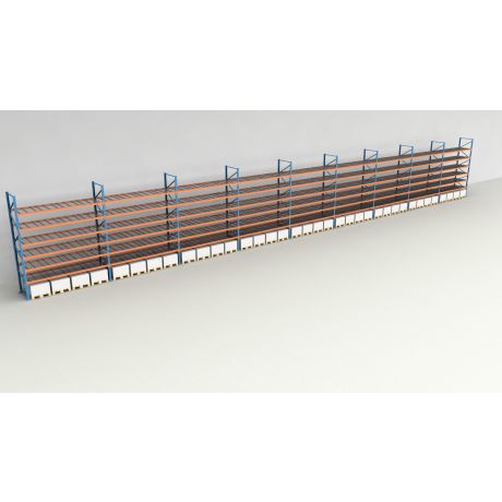 Das Palettenregal von NEDCON Lagertechnik hat Abmessungen von 3.500x33400x1.100 mm (HxBxT) und verfügt über 7 Lagerebenen. Jedes Regalfeld ist mit 6 Traversenebenen ausgestattet und kann je Ebene mit bis zu 4.700 kg (1175 kg je Europalette) belastet werden. Die maximale Feldlast beträgt 12.000 kg und darf niemals überschritten werden. Die lichte Fachhöhe zwischen den einzelnen Ebenen beträgt 400 mm. Die Palettenregal Traversenebenen sind mit Gitterböden vom Typ MantaMESH in der 750 kg Variante (je Palettenplatz) ausgestattet.