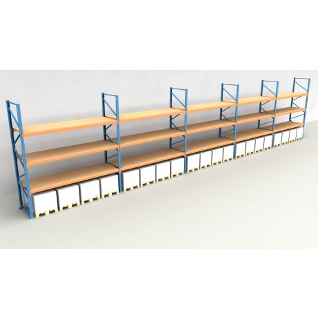 Das Palettenregal besteht aus insgesamt 5 Regalfeldern mit einer Breite von 3.600 mm und bietet Platz für 80 Europaletten (inklusive Bodenebene).