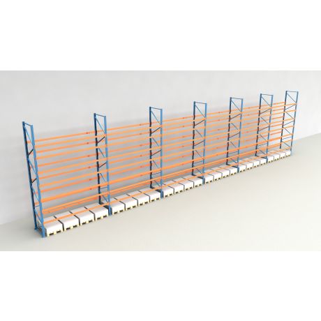 Das Palettenregal besteht aus insgesamt 6 Regalfeldern mit einer Breite von 3.600 mm und bietet Platz für 192 Europaletten (inklusive Bodenebene).