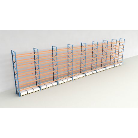 Das Palettenregal von NEDCON Lagertechnik hat Abmessungen von 4.000x22500x1.100 mm (HxBxT) und verfügt über 8 Lagerebenen. Jedes Regalfeld ist mit 7 Traversenebenen ausgestattet und kann je Ebene mit bis zu 3.000 kg (1000 kg je Europalette) belastet werden. Die maximale Feldlast beträgt 12.000 kg und darf niemals überschritten werden. Die lichte Fachhöhe zwischen den einzelnen Ebenen beträgt 400 mm. Bitte beachten Sie, dass auf den Traversen keine zusätzlichen Auflagen wie Spanplatten, oder Gitterböden vorhanden sind.