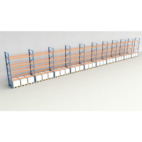 Das Palettenregal von NEDCON Lagertechnik hat Abmessungen von 4.000x28100x1.100 mm (HxBxT) und verfügt über 5 Lagerebenen. Jedes Regalfeld ist mit 4 Traversenebenen ausgestattet und kann je Ebene mit bis zu 3.000 kg (1000 kg je Europalette) belastet werden. Die maximale Feldlast beträgt 12.000 kg und darf niemals überschritten werden. Die lichte Fachhöhe zwischen den einzelnen Ebenen beträgt 700 mm. Bitte beachten Sie, dass auf den Traversen keine zusätzlichen Auflagen wie Spanplatten, oder Gitterböden vorhanden sind.