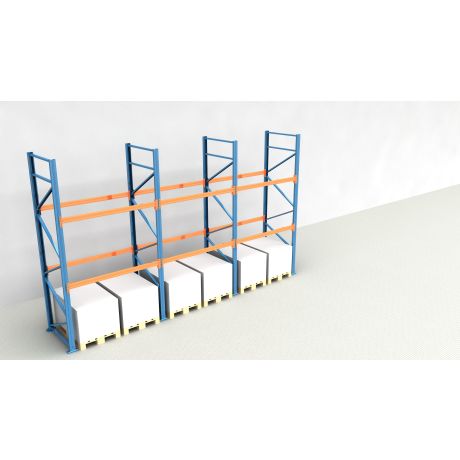 Das Palettenregal besteht aus insgesamt 3 Regalfeldern mit einer Breite von 1.825 mm und bietet Platz für 18 Europaletten (inklusive Bodenebene).
