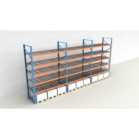 Das Palettenregal von NEDCON Lagertechnik hat Abmessungen von 4.000x8500x1.100 mm (HxBxT) und verfügt über 6 Lagerebenen. Jedes Regalfeld ist mit 5 Traversenebenen ausgestattet und kann je Ebene mit bis zu 3.000 kg (1000 kg je Europalette) belastet werden. Die maximale Feldlast beträgt 12.000 kg und darf niemals überschritten werden. Die lichte Fachhöhe zwischen den einzelnen Ebenen beträgt 550 mm. Die Palettenregal Traversenebenen sind mit Gitterböden vom Typ MantaMESH in der 750 kg Variante (je Palettenplatz) ausgestattet.