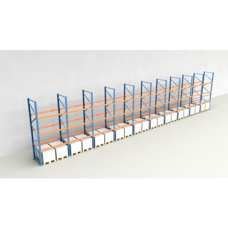 Das Palettenregal besteht aus insgesamt 10 Regalfeldern mit einer Breite von 1.825 mm und bietet Platz für 80 Europaletten (inklusive Bodenebene).