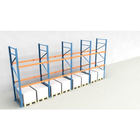 Das Palettenregal besteht aus insgesamt 4 Regalfeldern mit einer Breite von 1.825 mm und bietet Platz für 24 Europaletten (inklusive Bodenebene).
