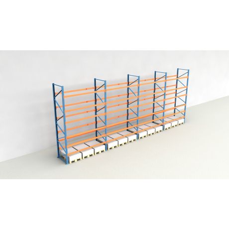 Das Palettenregal besteht aus insgesamt 4 Regalfeldern mit einer Breite von 2.700 mm und bietet Platz für 84 Europaletten (inklusive Bodenebene).