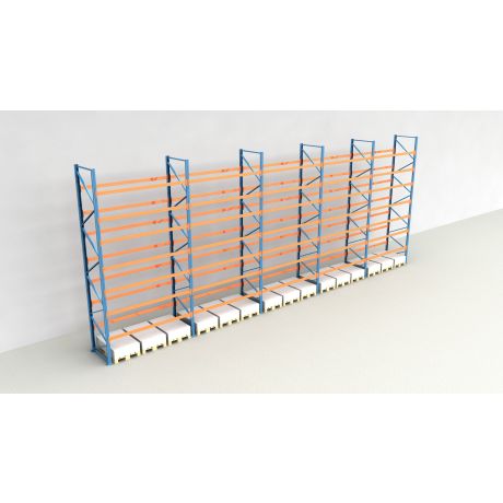 Das Palettenregal besteht aus insgesamt 5 Regalfeldern mit einer Breite von 2.700 mm und bietet Platz für 120 Europaletten (inklusive Bodenebene).