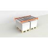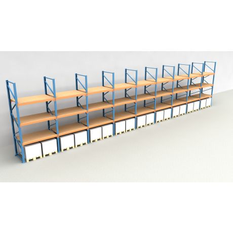 Das Palettenregal von NEDCON Lagertechnik hat Abmessungen von 5.000x17425x1.100 mm (HxBxT) und verfügt über 4 Lagerebenen. Jedes Regalfeld ist mit 3 Traversenebenen ausgestattet und kann je Ebene mit bis zu 3.000 kg (1500 kg je Europalette) belastet werden. Die maximale Feldlast beträgt 12.000 kg und darf niemals überschritten werden. Die lichte Fachhöhe zwischen den einzelnen Ebenen beträgt 1.150 mm. Die Palettenregal Traversenebenen sind mit Spanplatten vom Typ P4 in 38 mm Stärke ausgestattet.
