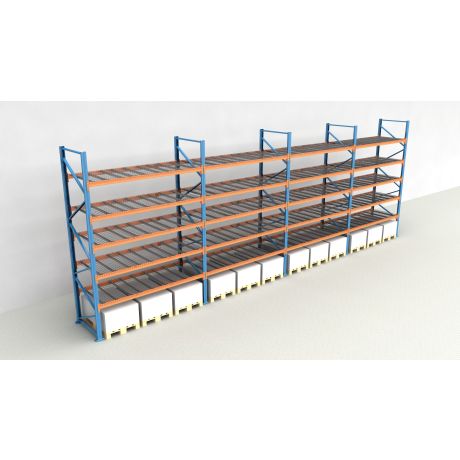 Das Palettenregal besteht aus insgesamt 4 Regalfeldern mit einer Breite von 2.700 mm und bietet Platz für 72 Europaletten (inklusive Bodenebene).