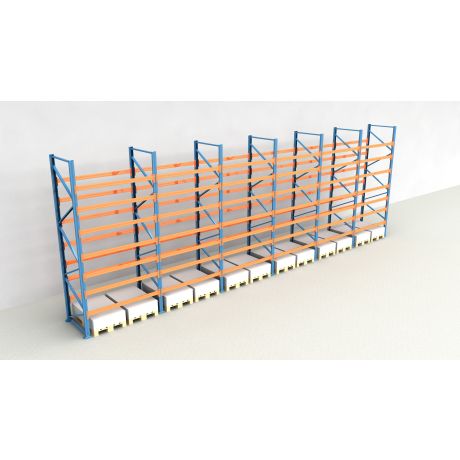Das Palettenregal besteht aus insgesamt 6 Regalfeldern mit einer Breite von 1.825 mm und bietet Platz für 96 Europaletten (inklusive Bodenebene).