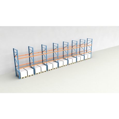 Das Palettenregal von NEDCON Lagertechnik hat Abmessungen von 5.500x13575x1.100 mm (HxBxT) und verfügt über 3 Lagerebenen. Jedes Regalfeld ist mit 2 Traversenebenen ausgestattet und kann je Ebene mit bis zu 3.000 kg (1500 kg je Europalette) belastet werden. Die maximale Feldlast beträgt 12.000 kg und darf niemals überschritten werden. Die lichte Fachhöhe zwischen den einzelnen Ebenen beträgt 1.750 mm. Bitte beachten Sie, dass auf den Traversen keine zusätzlichen Auflagen wie Spanplatten, oder Gitterböden vorhanden sind.