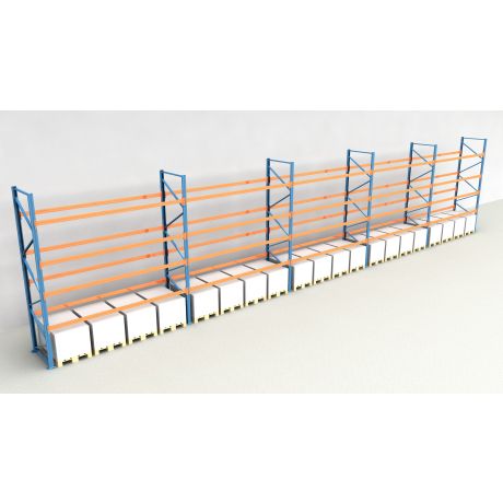 Das Palettenregal besteht aus insgesamt 5 Regalfeldern mit einer Breite von 3.600 mm und bietet Platz für 100 Europaletten (inklusive Bodenebene).
