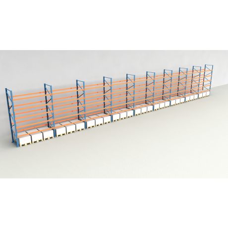 Das Palettenregal besteht aus insgesamt 9 Regalfeldern mit einer Breite von 2.700 mm und bietet Platz für 162 Europaletten (inklusive Bodenebene).