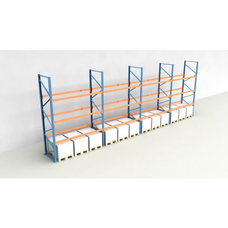 Das Palettenregal besteht aus insgesamt 4 Regalfeldern mit einer Breite von 2.700 mm und bietet Platz für 48 Europaletten (inklusive Bodenebene).