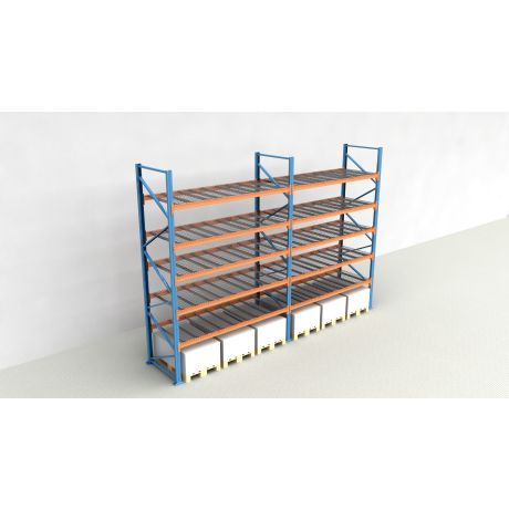 Das Palettenregal von NEDCON Lagertechnik hat Abmessungen von 6.000x5700x1.100 mm (HxBxT) und verfügt über 6 Lagerebenen. Jedes Regalfeld ist mit 5 Traversenebenen ausgestattet und kann je Ebene mit bis zu 3.000 kg (1000 kg je Europalette) belastet werden. Die maximale Feldlast beträgt 12.000 kg und darf niemals überschritten werden. Die lichte Fachhöhe zwischen den einzelnen Ebenen beträgt 900 mm. Die Palettenregal Traversenebenen sind mit Gitterböden vom Typ MantaMESH in der 750 kg Variante (je Palettenplatz) ausgestattet.
