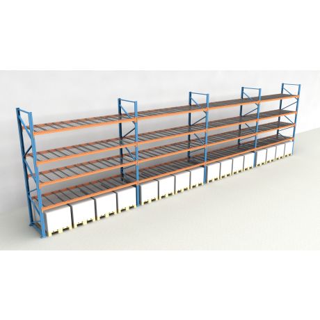 Das Palettenregal besteht aus insgesamt 4 Regalfeldern mit einer Breite von 3.600 mm und bietet Platz für 80 Europaletten (inklusive Bodenebene).