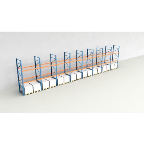 Das Palettenregal besteht aus insgesamt 8 Regalfeldern mit einer Breite von 1.825 mm und bietet Platz für 48 Europaletten (inklusive Bodenebene).