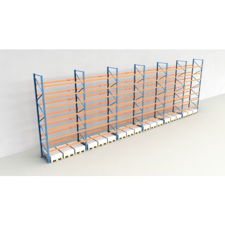 Das Palettenregal besteht aus insgesamt 6 Regalfeldern mit einer Breite von 2.700 mm und bietet Platz für 144 Europaletten (inklusive Bodenebene).