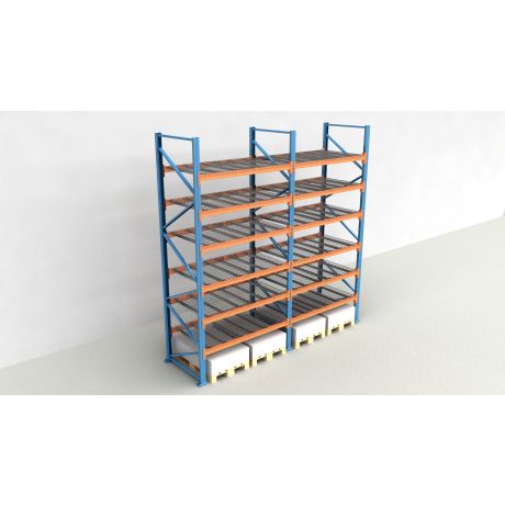 Das Palettenregal von NEDCON Lagertechnik hat Abmessungen von 6.500x3950x1.100 mm (HxBxT) und verfügt über 7 Lagerebenen. Jedes Regalfeld ist mit 6 Traversenebenen ausgestattet und kann je Ebene mit bis zu 3.800 kg (1900 kg je Europalette) belastet werden. Die maximale Feldlast beträgt 12.000 kg und darf niemals überschritten werden. Die lichte Fachhöhe zwischen den einzelnen Ebenen beträgt 850 mm. Die Palettenregal Traversenebenen sind mit Gitterböden vom Typ MantaMESH in der 750 kg Variante (je Palettenplatz) ausgestattet.