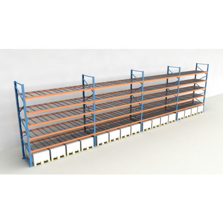 Das Palettenregal von NEDCON Lagertechnik hat Abmessungen von 7.000x14900x1.100 mm (HxBxT) und verfügt über 6 Lagerebenen. Jedes Regalfeld ist mit 5 Traversenebenen ausgestattet und kann je Ebene mit bis zu 4.700 kg (1175 kg je Europalette) belastet werden. Die maximale Feldlast beträgt 12.000 kg und darf niemals überschritten werden. Die lichte Fachhöhe zwischen den einzelnen Ebenen beträgt 1.050 mm. Die Palettenregal Traversenebenen sind mit Gitterböden vom Typ MantaMESH in der 750 kg Variante (je Palettenplatz) ausgestattet.