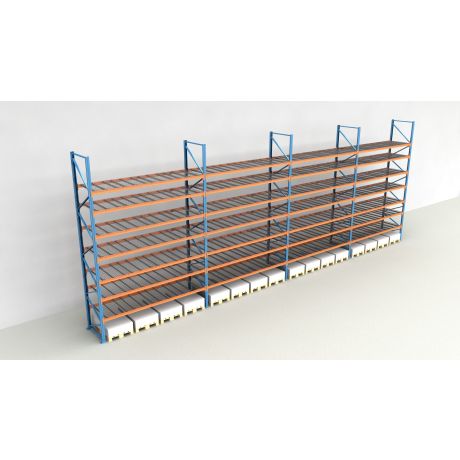 Das Palettenregal von NEDCON Lagertechnik hat Abmessungen von 7.000x14900x1.100 mm (HxBxT) und verfügt über 8 Lagerebenen. Jedes Regalfeld ist mit 7 Traversenebenen ausgestattet und kann je Ebene mit bis zu 4.700 kg (1175 kg je Europalette) belastet werden. Die maximale Feldlast beträgt 12.000 kg und darf niemals überschritten werden. Die lichte Fachhöhe zwischen den einzelnen Ebenen beträgt 750 mm. Die Palettenregal Traversenebenen sind mit Gitterböden vom Typ MantaMESH in der 750 kg Variante (je Palettenplatz) ausgestattet.