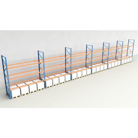 Das Palettenregal besteht aus insgesamt 6 Regalfeldern mit einer Breite von 3.600 mm und bietet Platz für 96 Europaletten (inklusive Bodenebene).