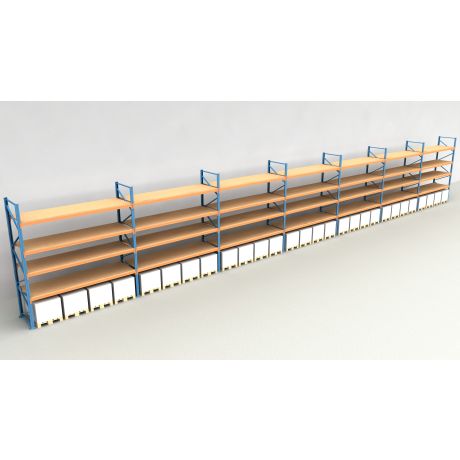 Das Palettenregal von NEDCON Lagertechnik hat Abmessungen von 7.000x26000x1.100 mm (HxBxT) und verfügt über 5 Lagerebenen. Jedes Regalfeld ist mit 4 Traversenebenen ausgestattet und kann je Ebene mit bis zu 4.700 kg (1175 kg je Europalette) belastet werden. Die maximale Feldlast beträgt 12.000 kg und darf niemals überschritten werden. Die lichte Fachhöhe zwischen den einzelnen Ebenen beträgt 1.300 mm. Die Palettenregal Traversenebenen sind mit Spanplatten vom Typ P4 in 38 mm Stärke ausgestattet.